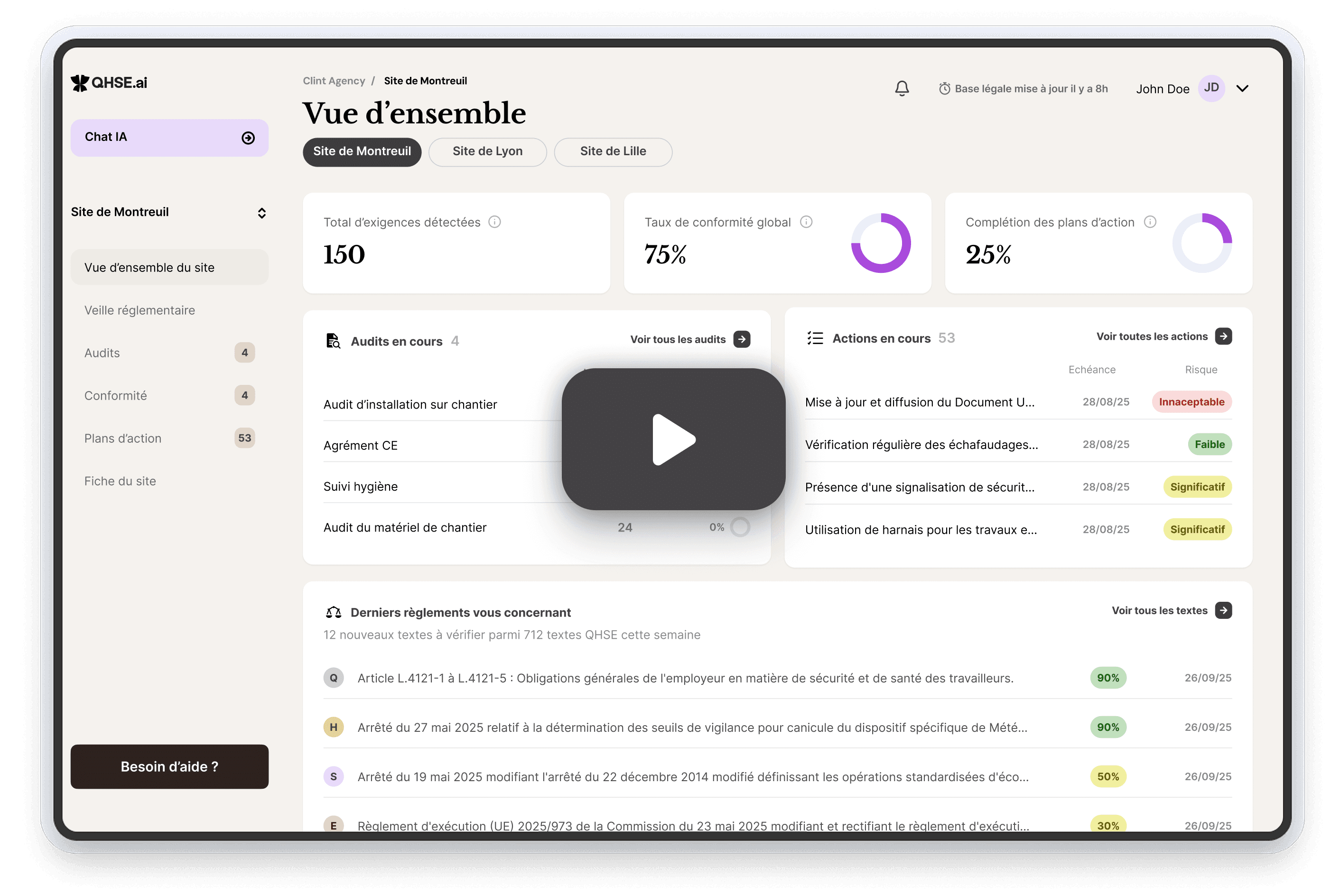 QHSE.ai scanne les sources officielles Légifrance et Eur-Lex pour vous en temps réel.